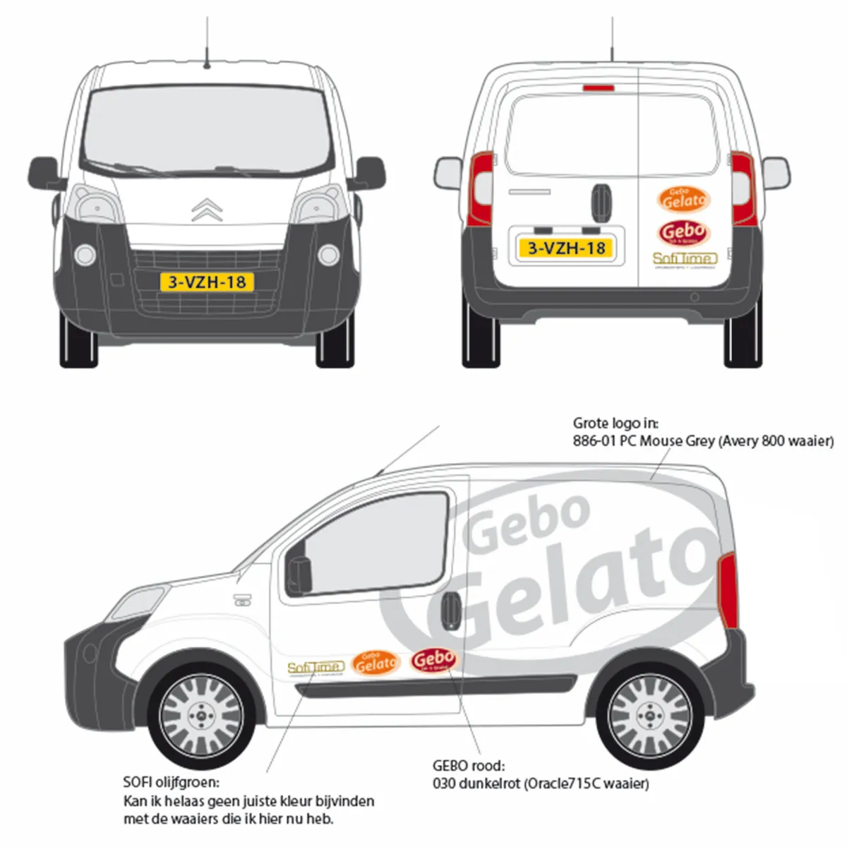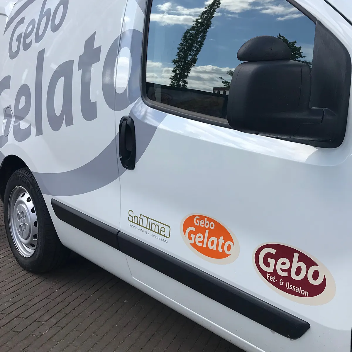 Een nieuwe bestelwagen vraagt ook om een nieuwe belettering. Voor GEBO mochten wij dit keer een zo simpel mogelijke belettering maken. Na het maken van de werktekening of schets en het kiezen van de juiste kleuren folies kon het daadwerkelijke beplakken plaatsvinden. Leuk om de wagen door de Hoeksche Waard te zien rijden!