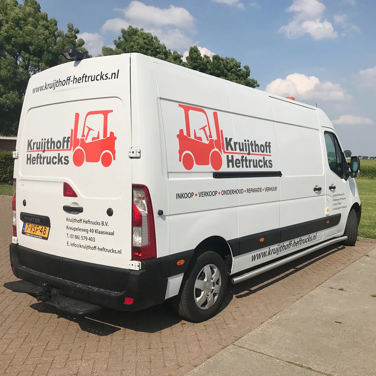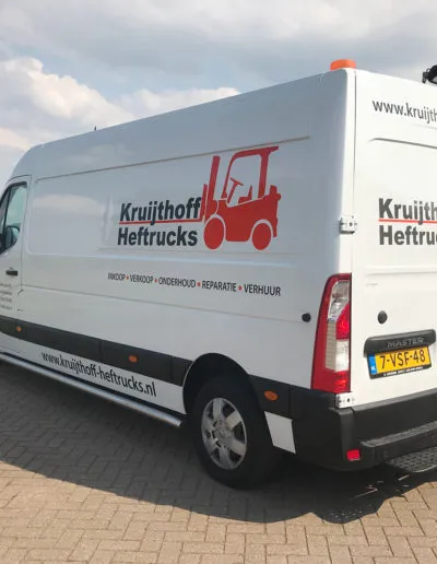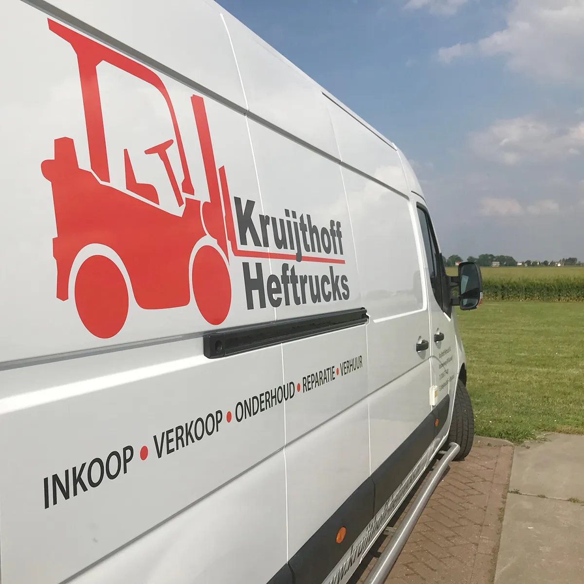 Onze klant Kruijthoff Heftrucks heeft recent een nieuwe bus aangeschaft. Net als bij hun andere bussen werden wij gevraagd hiervoor ook de belettering weer te verzorgen. Uiteraard in lijn met de andere bussen. Vorige week werd de bus beplakt en afgeleverd en uiteraard direct ingezet!