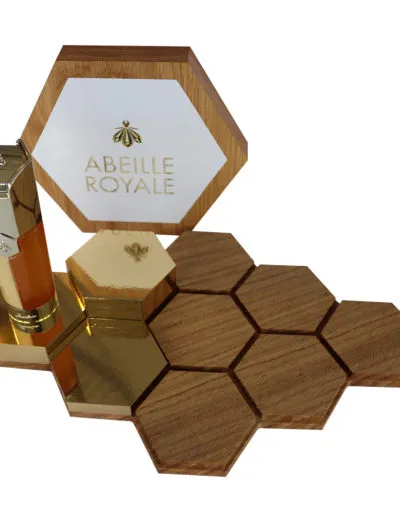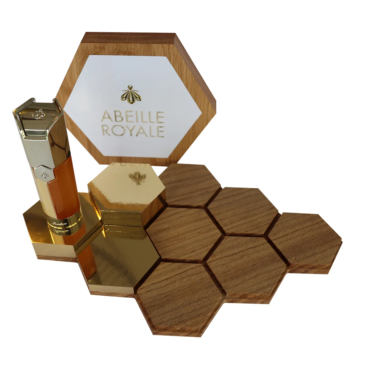 ABEILLE ROYALE is een nieuw serum van GUERLAIN. Om dit nieuwe product in Nederland en België te presenteren ontwikkelden wij deze display. Deels van hout en deels van kunststof, geheel volgens de wensen en huisstijl regels van de klant. Wij zijn er trots op dit soort mooie displays te mogen maken. Ook op zoek naar een mooie display uit karton, hout of kunststof? Neem dan contact met ons op!