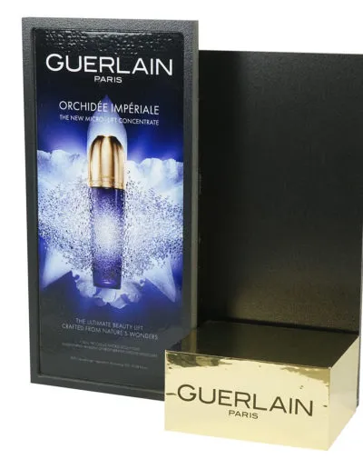 Voor Guerlain hebben we deze winkel display gemaakt, op basis een bestaande display. We hebben de maten genomen en deze vervolgens vertaald naar deze nieuwe display. De visual is eenvoudig te vervangen, zo hebben we een duurzame en herbruikbare display die voor langere tijd inzetbaar is. Ook op zoek naar een display? Neem contact met ons op!