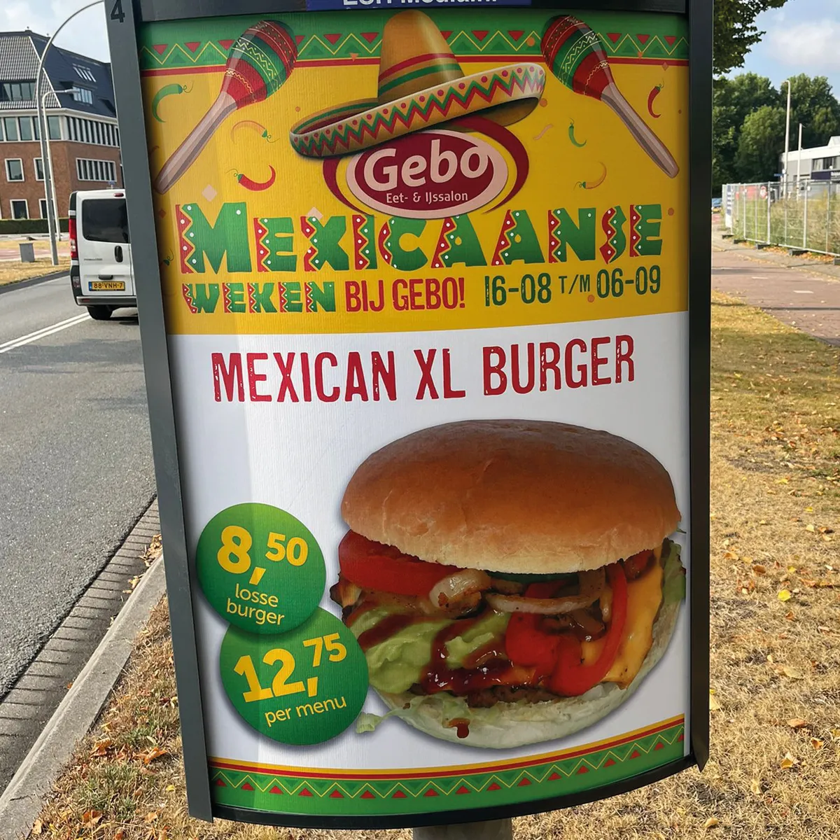 Om onder de aandacht te blijven hebben we het thema ‘Mexicaanse weken’ bedacht. We genereerden extra aandacht voor de acties dmv de 20 paalborden langs de weg. Door de herhaling zijn de acties goed zichtbaar, en dat was merkbaar aan de verkoop!