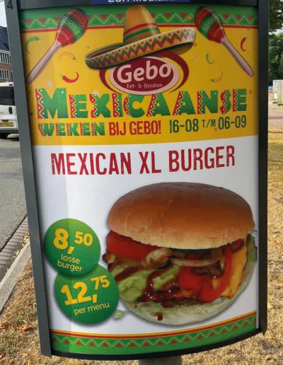 Om onder de aandacht te blijven hebben we het thema ‘Mexicaanse weken’ bedacht. We genereerden extra aandacht voor de acties dmv de 20 paalborden langs de weg. Door de herhaling zijn de acties goed zichtbaar, en dat was merkbaar aan de verkoop!