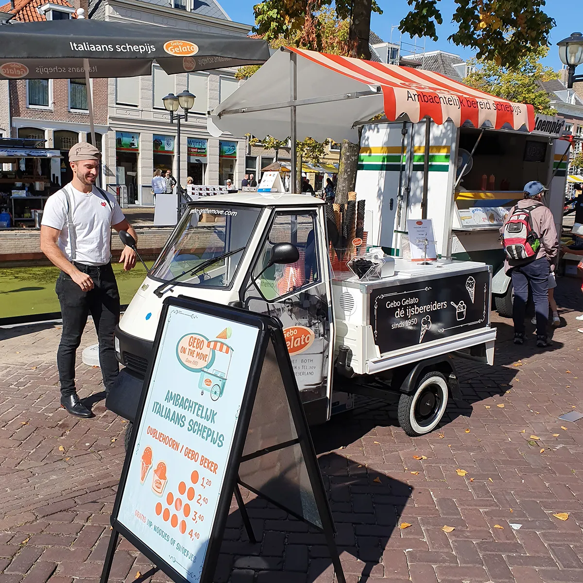 Gebo on the move is een nieuw concept van Gebo Gelato. Met een super gave Piaggio die helemaal bestickerd is gaan ze alle evenementen af in de regio, om daar hun heerlijke ijs te verkopen. Wij verzorgden het ontwerp en de beletettering en namen ook het marketing materiaal hiervoor voor onze rekening. De eerste evenementen waren een succes, dat beloofd wat voor komende zomer!