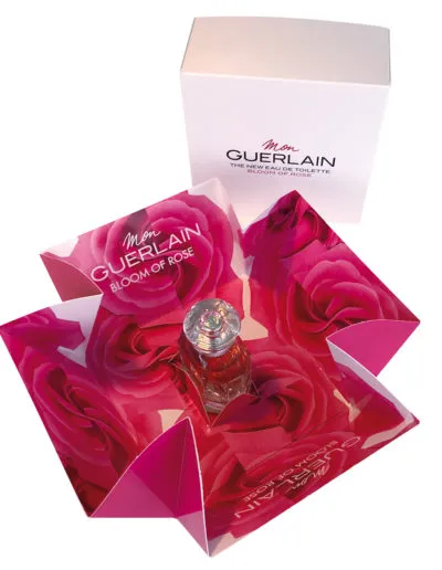 Voor de introductie van de nieuwe Eau de Toilette, BLOOM OF ROSE, ontwikkelden wij een verpakking. Uitdaging was de flacon in de verpakking vast te zetten en er tevens voor te zorgen dat de bodem open zou ‘ploppen’ als een roos. Na wat puzzelen en testen zijn we daarin geslaagd. We hebben ook het drukwerk verzorgd en de verpakkingen op tijd afgeleverd bij een blije klant!