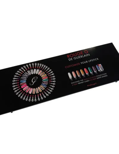 Een visualblok is een onderdeel van een make-up presentatiemeubel van in dit geval GUERLAIN. Deze ‘blokken’ passen op diverse plaatsen in het meubel. Uitdaging was dit binnen budget én deadline te maken. Die uitdaging hebben we vaker en gaan we nooit uit de weg. Ook deze keer zijn we op beide onderdelen geslaagd!