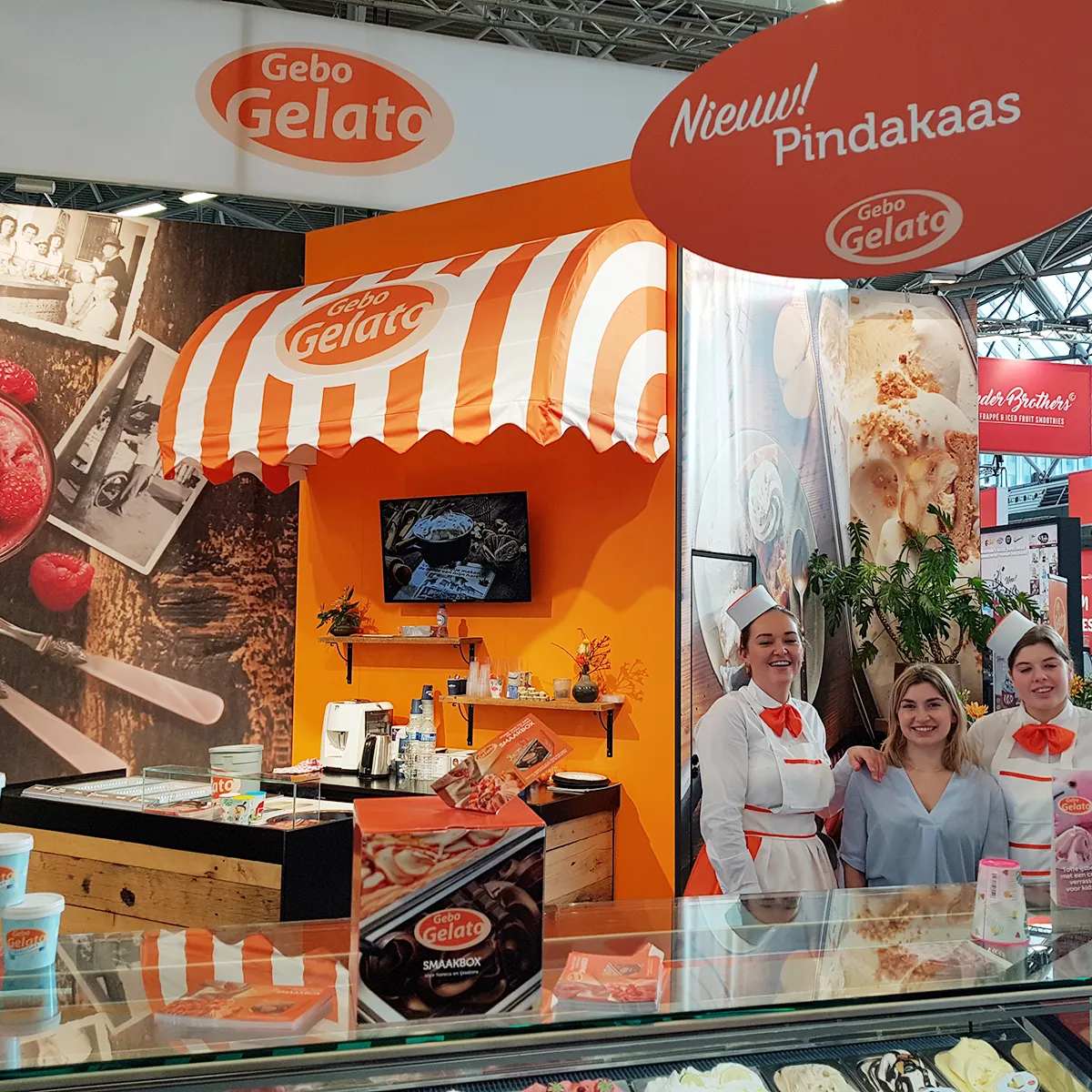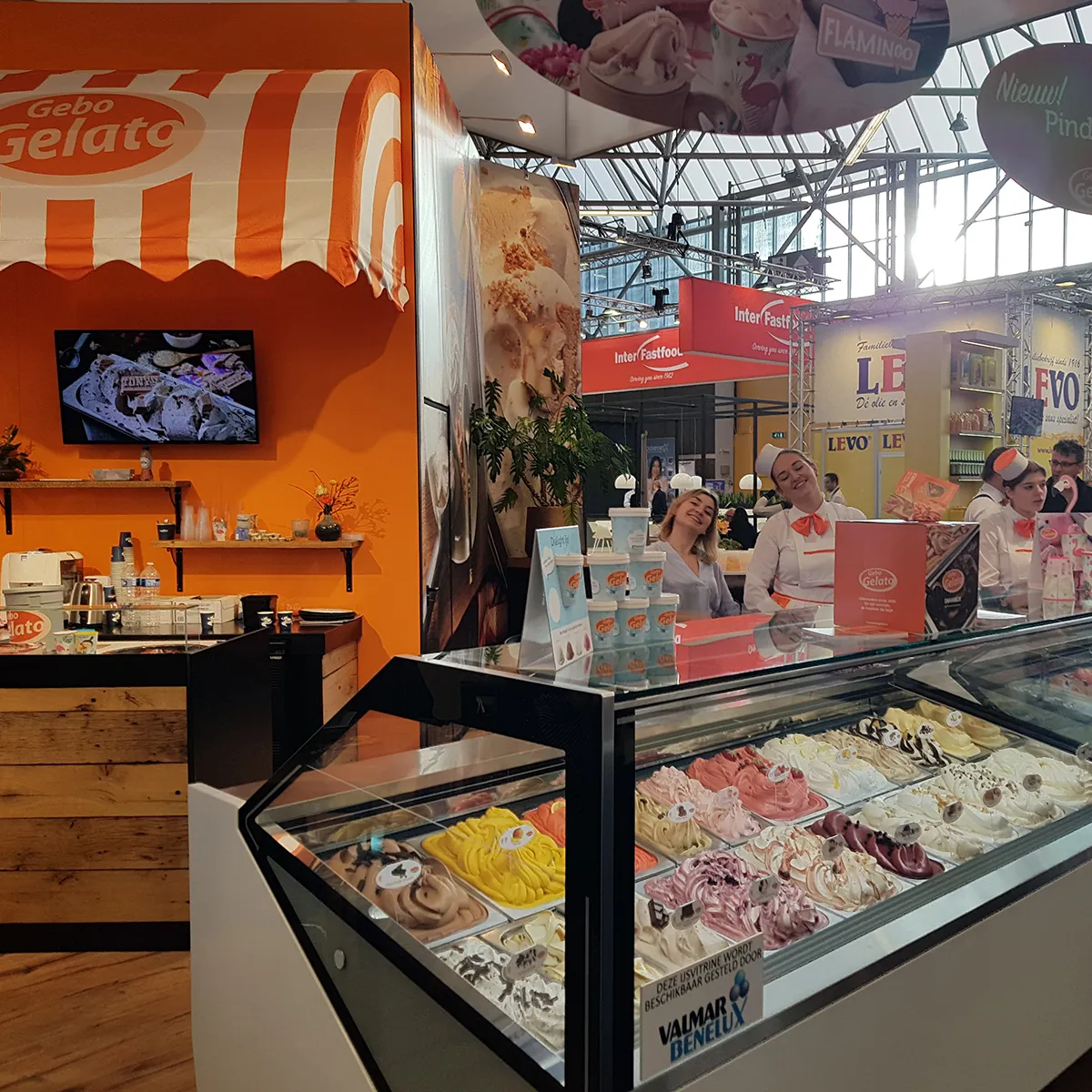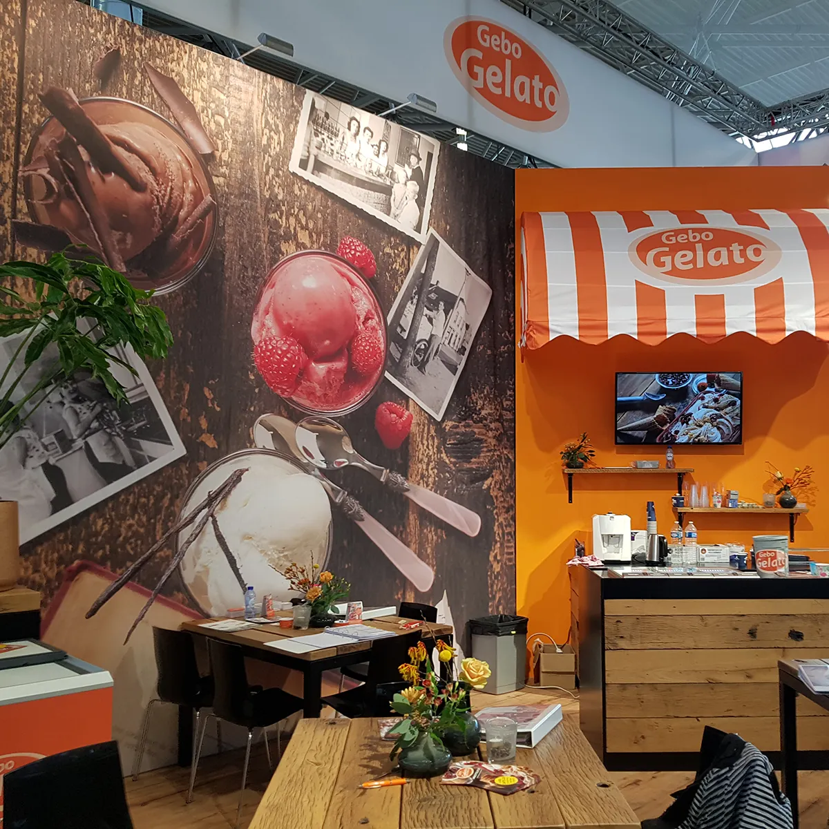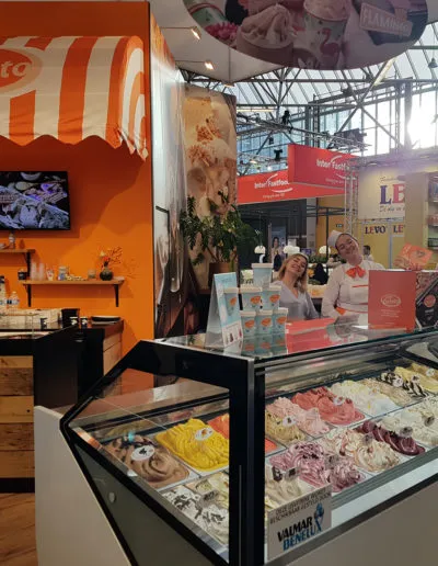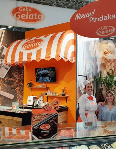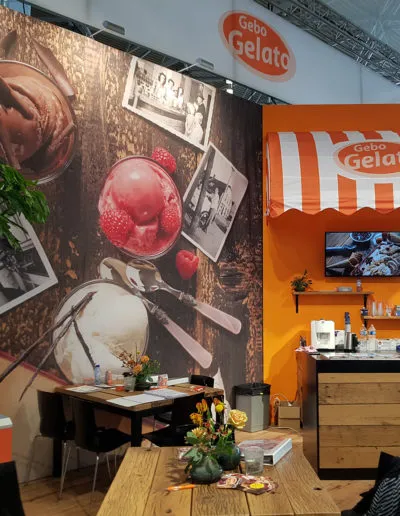 Zoals we al eerder berichten zijn wij in het najaar altijd erg druk de Horecava items van onze klant Gebo Gelato. Nu maakten we de standwanden, smaakboxen, plafondhangers, display’s, leaflets, mappen, een bedrijfsfolder en smaakstickers voor in de vitrine. Door de ultra korte deadlines erg intensief maar wel weer op tijd gereed!