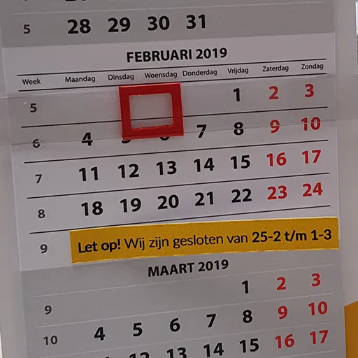 Wij zijn gesloten van 25 februari tot en met 1 maart!
