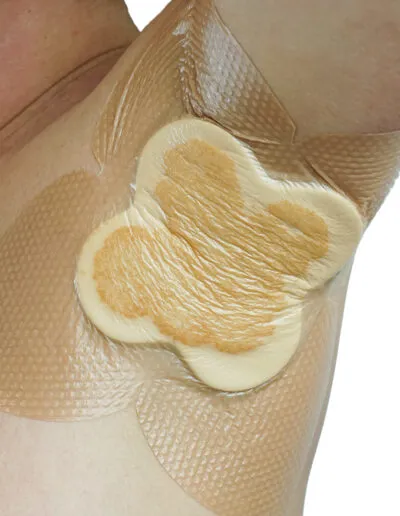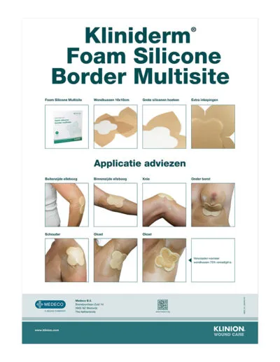 Voor de opmaak van deze gebruiksaanwijzing werd ons gevraagd om de pleister waar het hier om draait, bij ons in huis te fotograferen op een model. Door de wondverpleegkundige werden de pleisters kundig aangebracht. Het wondvocht kwam tot stand met behulp van een kopje thee!