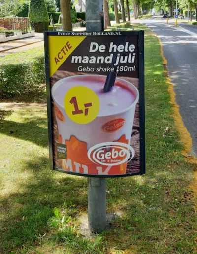 Gebo eet- en IJssalon is echt een begrip in Oud-Beijerland. Wij verzorgden een campagne waarin, naast de nieuwe patat specials, ook aanbiedingen voor de Mini Coupes en de Milkshakes gepromoot worden. We mochten ons zelf ook nog een beetje promoten van de klant, daar zijn we natuurlijk blij mee. Wil je ook werken aan je zichtbaarheid in de regio? Neem contact met ons op!