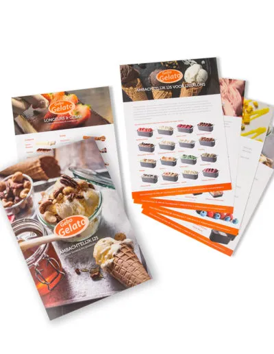 Voor Gebo Gelato hebben we een serie productleaflets vormgegeven. Om deze leaflets handig te kunnen bundelen maakten we daar een passende omslagmap bij. Ook de productfotografie op locatie en studio verzorgden wij via met vaste ‘foodfotograaf’. Geweldig leuk om te doen, natuurlijk veel te veel van dat heerlijke ijs gesnoept nadat de beelden geschoten waren. Wat een leuk werk hebben wij!