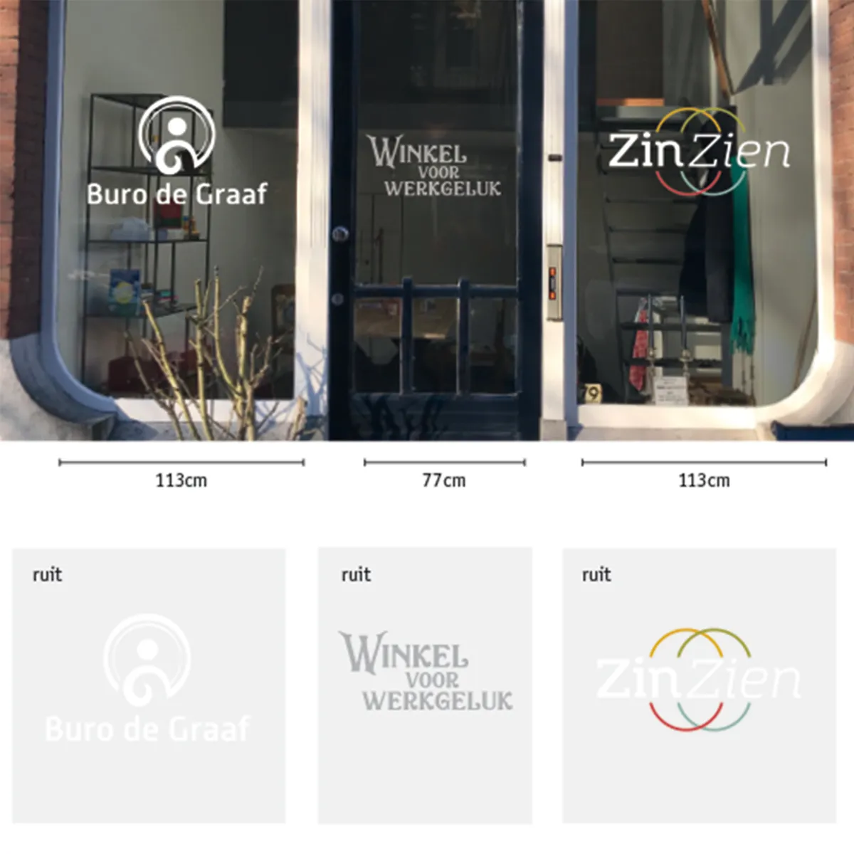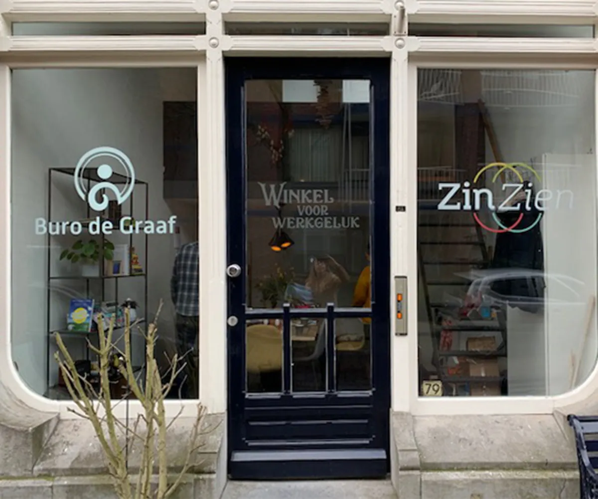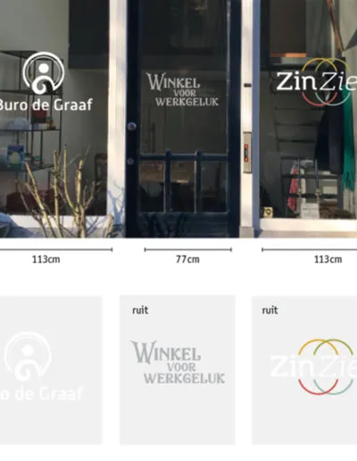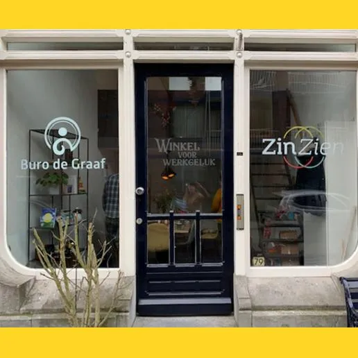 Winkel voor werkgeluk Buro de Graaf en Zin-Zien hebben samen een bedrijfspand betrokken in Dordrecht. Wij maakten de bestanden voor de raambelettering op en verzorgden het aanbrengen daarvan. Een tevreden klant is het gevolg, en zij blij wij blij!