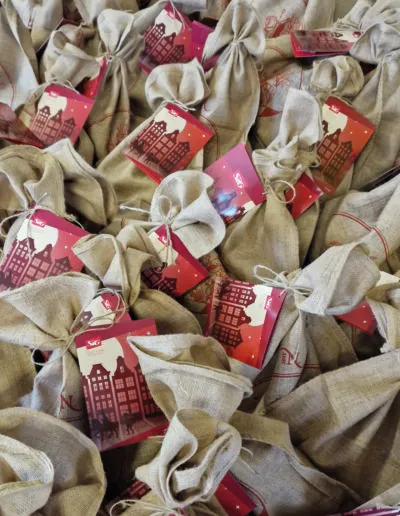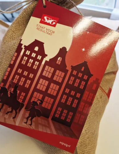 SIG Afbouwspecialist heeft dit jaar weer voor Reklamesuper gekozen om 835 zakken te vullen met snoepgoed met daarbij uiteraard een Sint-gedicht. Hierbij hebben wij alles tot in de puntjes geregeld van inkoop zakken, drukwerk en snoepgoed tot het vullen en verzendklaar maken van de custom made Sinterklaaszakken.