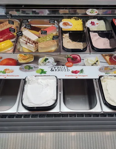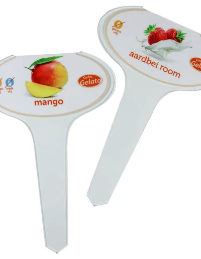 IJsvitrines zien er door alle kleuren van het ijs vaak geweldig en smaakvol uit, voor GEBO is dat niet voldoende. Zij willen hun ijsvitrines echt helemaal af hebben. Dat doen ze door deze ijstekers te gebruiken, elke bak zijn eigen steker om zo helder naar hun klant de smaakkeuze te communiceren. En het ziet er zo op deze manier top uit!