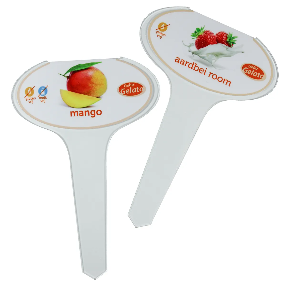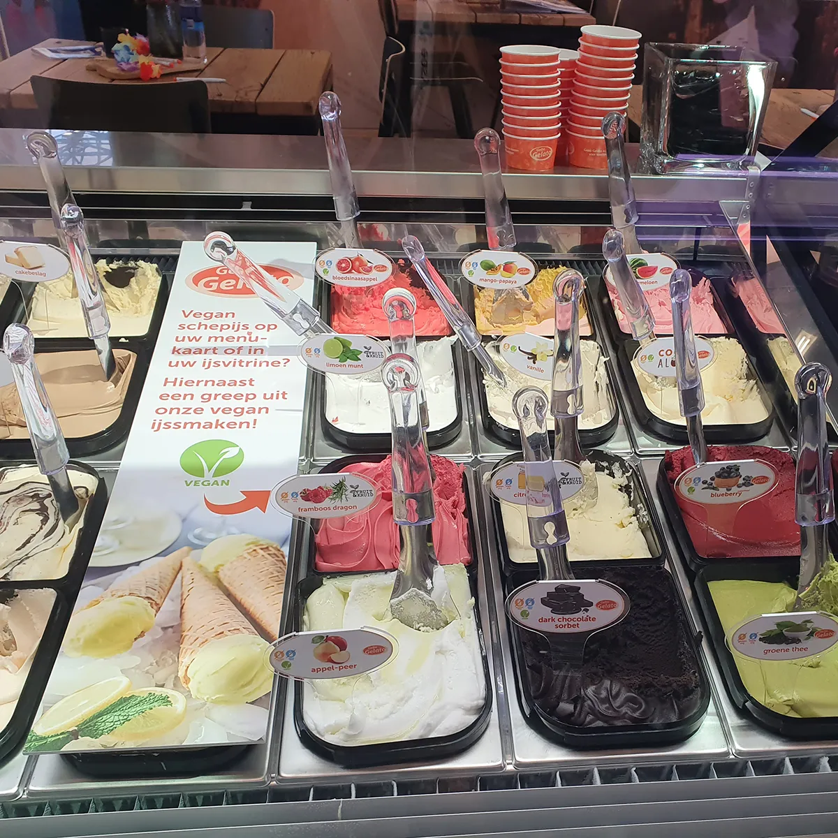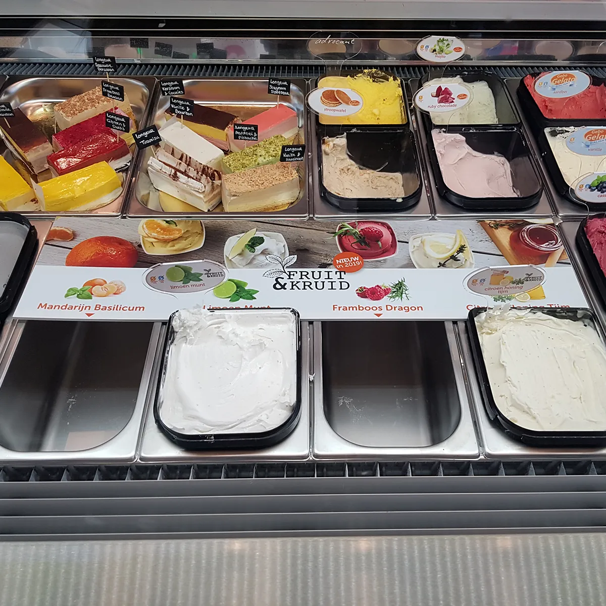 IJsvitrines zien er door alle kleuren van het ijs vaak geweldig en smaakvol uit, voor GEBO is dat niet voldoende. Zij willen hun ijsvitrines echt helemaal af hebben. Dat doen ze door deze ijstekers te gebruiken, elke bak zijn eigen steker om zo helder naar hun klant de smaakkeuze te communiceren. En het ziet er zo op deze manier top uit!