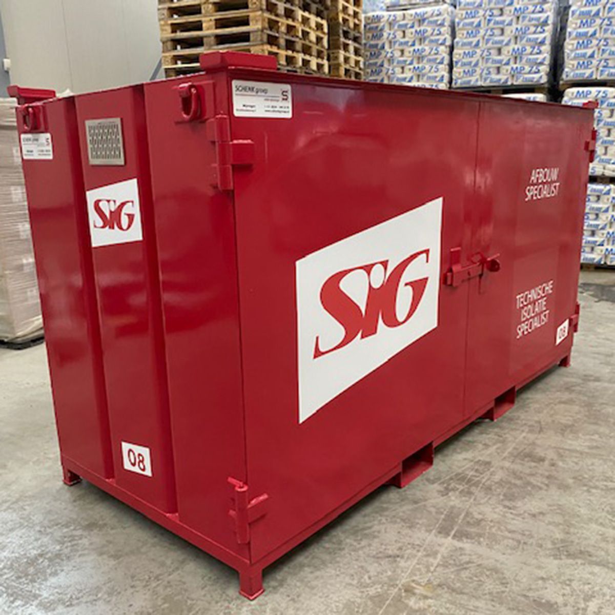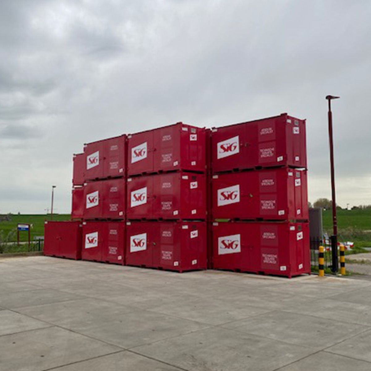 Hoe zorg je ervoor dat verhuurcontainers in het oog springen op een bouwlocatie? Door ze te voorzien van een duidelijke signing met het bedrijflogo! Hoe hou je ze uit elkaar? Door ze elk te voorzien van hun eigen nummer, zo kan de klant in het oog houden wat er in welke container zit en hou je als bedrijf zelf overzicht waar welke container is ondergebracht.