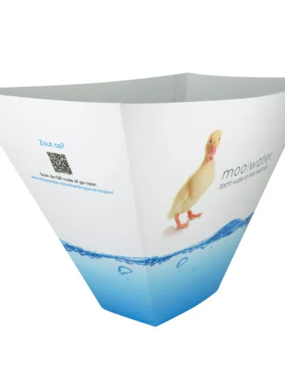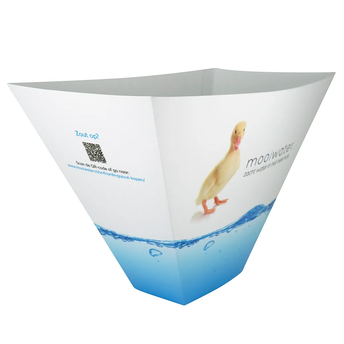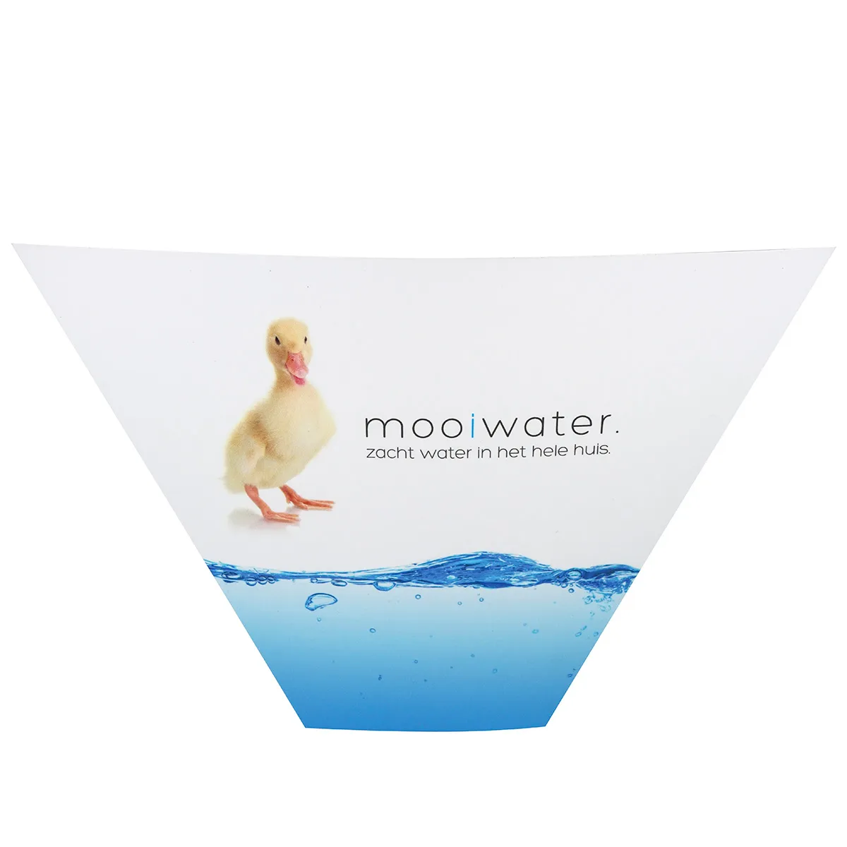 Voor MooiWater hebben wij een vulhulp ontwikkeld om zonder morsen zout bij te vullen van hun waterontharders. De trechter is zo ontworpen dat ie mooi aansluit op de waterontharder. Ze zijn uitgevoerd in een stevig karton, voor extra bescherming kregen ze een laminaat mee. Zo zijn ze duurzaam en milieu vriendelijk, handig! www.mooiwater.nl